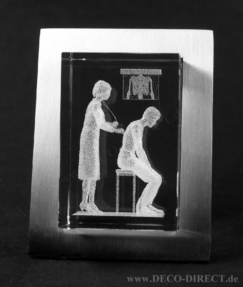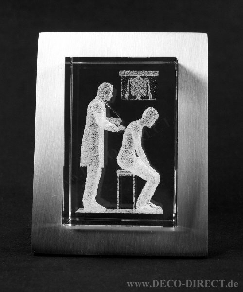 DECO DIRECT® 3D-Glasobjekt Arzt, 40 x 40 x 60 mm, in Edelstahlrahmen (64 x 84 mm), Gravur-Empfehlung: auf Edelstahlrahmen