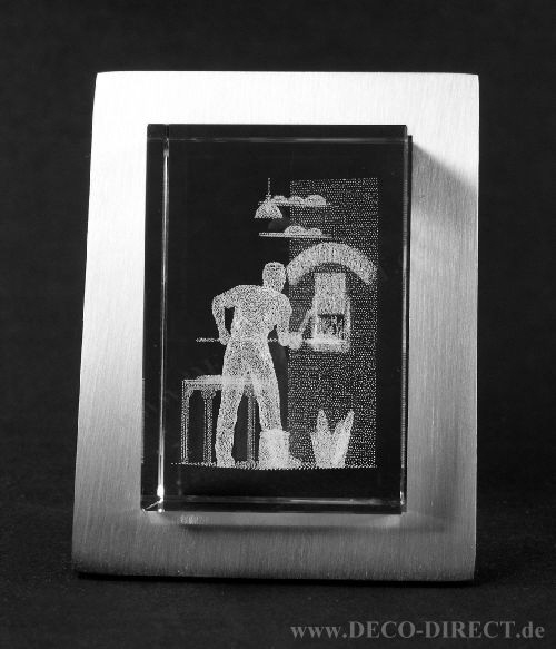 DECO DIRECT® 3D-Glasobjekt Bäcker, 40 x 40 x 60 mm, in Edelstahlrahmen (64 x 84 mm), Gravur-Empfehlung: auf Edelstahlrahmen