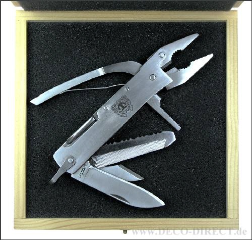 DECO DIRECT® Multifunktionswerkzeug "Bäcker 1" aus Edelstahl mit 9 Funktionen, inkl. Bereitschaftstasche, ca. 13,5 x 7 x 2 cm, in Holz-Geschenkverpackung (16,5 x 16,5 x 3,5 cm), Gravur-Empfehlung: Nam ...