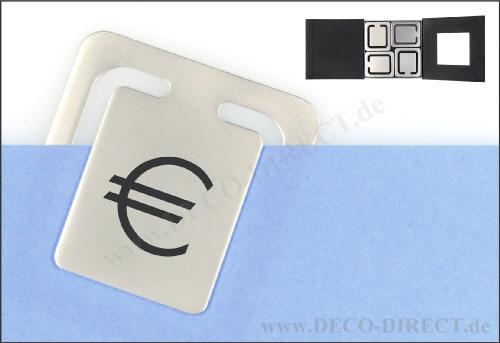 DECO DIRECT® 4er-Set Lesezeichen Euro aus Metall, je 43 x 38 mm, in exklusiver Karton-Geschenkverpackung, Gravurempfehlung: Initialen auf Lesezeichen / Schild auf Verpackungsaußenseite, Bestellnummer: ...