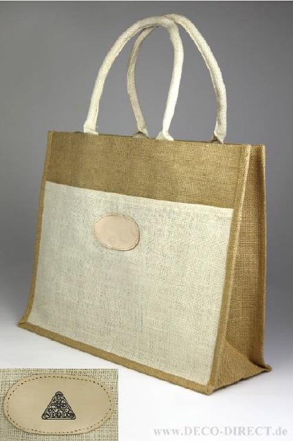 DECO DIRECT® Einkaufstasche Billard, 45 x 36 x 16 cm, natürliche Jute mit Innenbeschichtung, Baumwollhenkel und Fronttasche, Gravurempfehlung: Initialen auf Fronttasche, Bestellnummer: 83111650