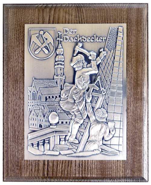 DECO DIRECT® Reliefbild "Dachdecker" auf massiver Holzplatte 27 x 22 cm mit integriertem Aufhänger