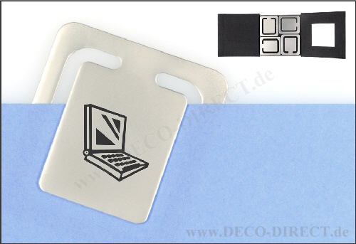 DECO DIRECT® 4er-Set Lesezeichen Computer aus Metall, je 43 x 38 mm, in exklusiver Karton-Geschenkverpackung, Gravurempfehlung: Initialen auf Lesezeichen / Schild auf Verpackungsaußenseite, Bestellnum ...