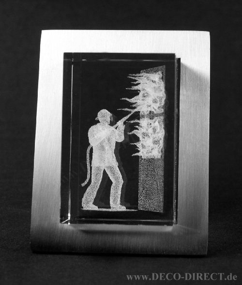 DECO DIRECT® 3D-Glasobjekt Feuerwehrmann, 40 x 40 x 60 mm, in Edelstahlrahmen (64 x 84 mm), Gravur-Empfehlung: auf Edelstahlrahmen