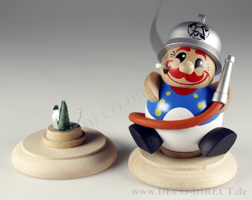 DECO DIRECT® Kugelmännchen Smokey "Feuerwehrmann" auf Sockel aus Buche-Massivholz, H: ca. 13,0 cm, inkl. 1 Packung Räucherkegel Duft "Grüner Apfel", Gravur-Empfehlung: Rundgravur auf Holzsockel