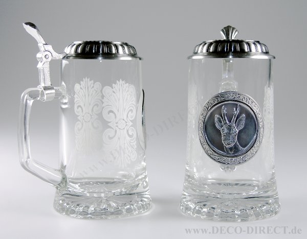 DECO DIRECT® Glas-Bierseidel Reh 0,5 l, mit Zinndeckel und Sternboden, H: ca. 18,5 cm, Gravur-Empfehlung: auf Deckeloberseite, Bestellnummer: 75190170