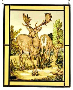 DECO DIRECT® Glasbild Dammhirsche, handbemalt und bei ca. 700°C gebrannt, ca. 24 x 30 cm, Bestellnummer: 65190105
