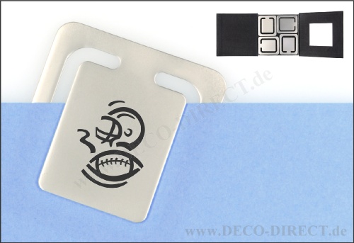 DECO DIRECT® 4er-Set Lesezeichen American Football aus Metall, je 43 x 38 mm, in exklusiver Karton-Geschenkverpackung, Gravurempfehlung: Initialen auf Lesezeichen / Schild auf Verpackungsaußenseite, Bestellnummer: 58151210