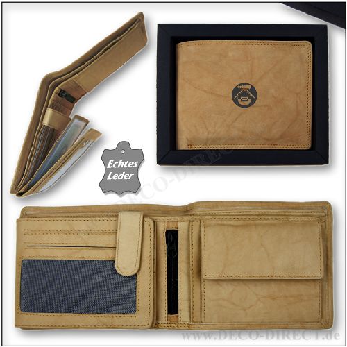 DECO DIRECT® Leder-Geldbörse Fotograf aus naturbraunem Echt-Leder, 2 Scheinfächer, 11 Kartenfächer, 3 Ausweisfächer, 1 Reißverschlussfach, in Geschenkverpackung, Gravur-Empfehlung: Innenseite Geldbörse auf Kleingeldfach / Schild auf Verpackungsaußenseite, Bestellnummer: 42150810