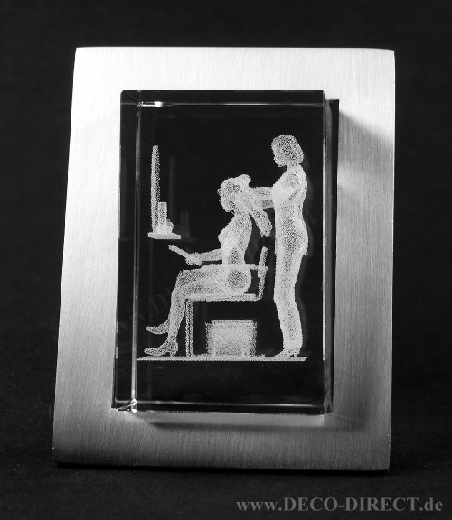 DECO DIRECT® 3D-Glasobjekt Frisörin, 40 x 40 x 60 mm, in Edelstahlrahmen (64 x 84 mm), Gravur-Empfehlung: auf Edelstahlrahmen, Bestellnummer: 90150901