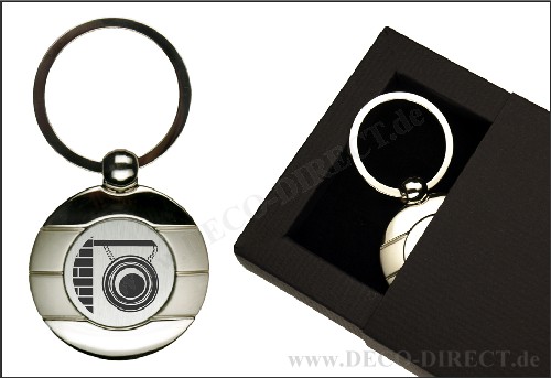 DECO DIRECT® Schlüsselanhänger rund Frisör aus Metall, L: ca. 7,5 cm, in exklusiver Geschenkverpackung, Gravurempfehlung: Schild auf Geschenkverpackung, Bestellnummer: 10150960
