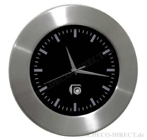 DECO DIRECT® Wanduhr schwarz Friseur, Ø 30 cm, in Aluminumgehäuse gebürstet mit Glasabdeckung, inkl. Batterie, Gravurempfehlung: auf Glasabdeckung, Bestellnummer: 13150960
