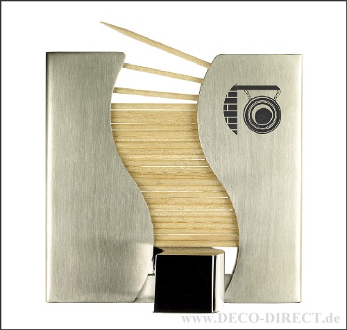 DECO DIRECT® Zahnstocherspender Frisör aus Edelstahl, Maße: 8,0 x 8,0 x 3,5 cm, in exklusiver Karton-Geschenkverpackung schwarz/silber (8,5 x 8,5 x 5,5 cm), Gravurempfehlung: auf Zahnstocherspender / auf Verpackungsaußenseite, Bestellnummer: 76150940