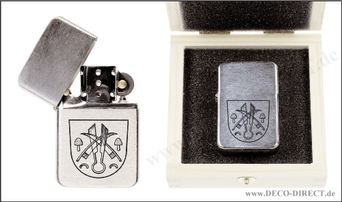 DECO DIRECT® Benzin-Feuerzeug Gerber 2 aus Metall mit gebürsteter Oberfläche, ca. 5,7 x 3,6 x 1,2 cm, nachfüllbar mit Feuerzeugbenzin (Lieferung aus Sicherheitsgründen ungefüllt), in Holzverpackung (9 ...