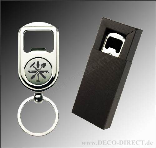 DECO DIRECT® Schlüsselanhänger Glaser aus Metall mit Flaschenöffner, L: ca. 9,8 cm, in exklusiver Geschenkverpackung, Gravurempfehlung: auf Schlüsselanhänger / Schild auf Geschenkverpackung, Bestellnummer: 10160750