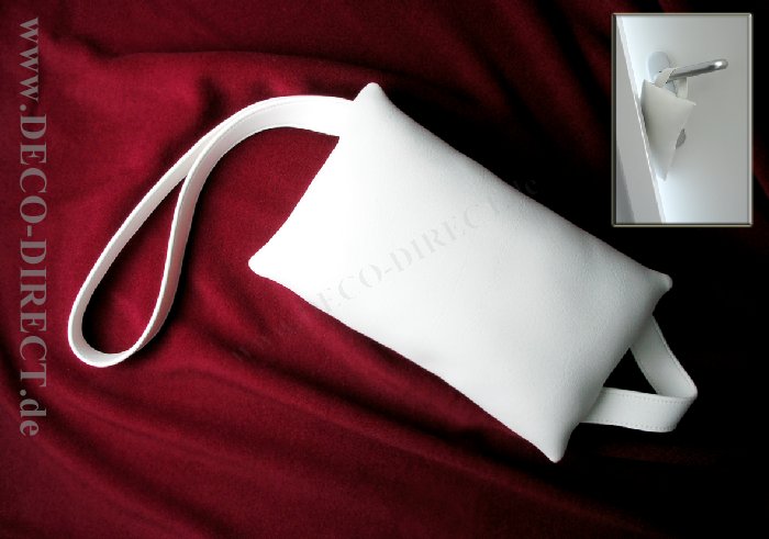 DECO DIRECT® Türstopper / Fensterstopper Cool White, weiß, Größe Polster ca. 18 x 11 cm, mit Schlingen zum Einhängen, Material pflegeleichtes strapazierfähiges Kunstleder, Gravurempfehlung: Gravurschild an Cool White, Bestellnummer: 1-TFS-300