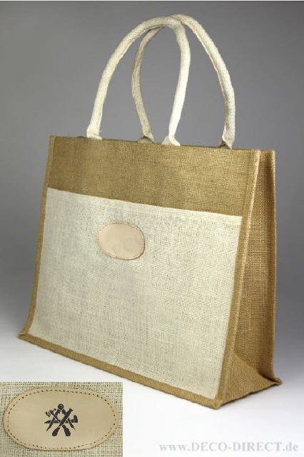 DECO DIRECT® Einkaufstasche Graveur, 45 x 36 x 16 cm, natürliche Jute mit Innenbeschichtung, Baumwollhenkel und Fronttasche, Gravurempfehlung: Initialen auf Fronttasche, Bestellnummer: 83161350