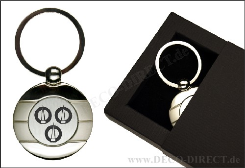 DECO DIRECT® Schlüsselanhänger rund Gürtler aus Metall, L: ca. 7,5 cm, in exklusiver Geschenkverpackung, Gravurempfehlung: Schild auf Geschenkverpackung, Bestellnummer: 10161260