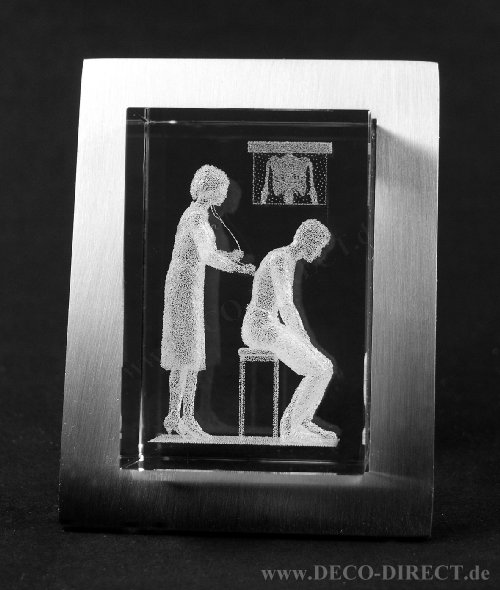 DECO DIRECT® 3D-Glasobjekt Ärztin, 40 x 40 x 60 mm, in Edelstahlrahmen (64 x 84 mm), Gravur-Empfehlung: auf Edelstahlrahmen, Bestellnummer: 90100602