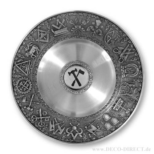 DECO DIRECT® Handwerkerteller aus Zinn mit traditionellen Zunftzeichen und altem Handwerkerspruch Gott segne das ehrbare Handwerk, Ø 26 cm, Bestellnummer: 75360100