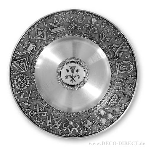 DECO DIRECT® Handwerkerteller Kaminkehrer 2 aus Zinn mit traditionellem Zunftzeichen, Ø 26 cm, Bestellnummer: 75200252