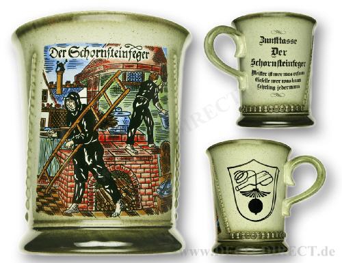 DECO DIRECT® Zunfttasse Der Schornsteinfeger mit Meisterspruch Meister ist wer was ersann, Geselle wer was kann, Lehrling jedermann und Zunftzeichen, 0,3 l, aus Keramik grau/grün, Höhe ca. 11 cm, Best ...