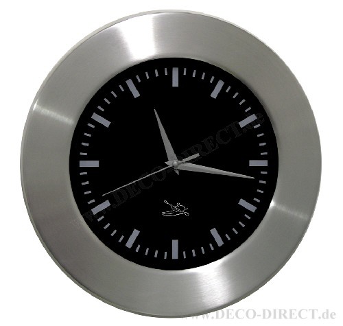 DECO DIRECT® Wanduhr schwarz Kanufahrer, Ø 30 cm, in Aluminumgehäuse gebürstet mit Glasabdeckung, inkl. Batterie, Gravurempfehlung: auf Glasabdeckung, Bestellnummer: 13201660