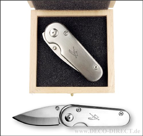 DECO DIRECT® Taschenmesser Kanufahrer - kompaktes Ganzmetall-Messer aus rostfreiem Edelstahl, Gesamtlänge ausgeklappt: ca. 13,6 cm, Stahlklinge, mit Gürtelclip, in Holzverpackung (9,5 x 9,5 x 3,5 cm), Gravurempfehlung: auf Messer / auf Verpackung, Bestellnummer: 79201620