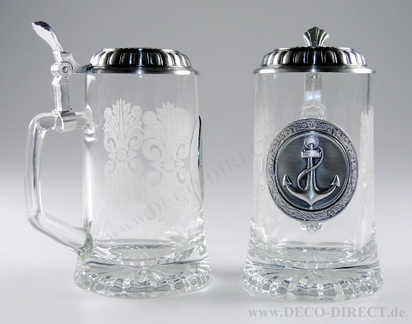 DECO DIRECT® Glas-Bierseidel Anker 0,5 l, mit Zinndeckel und Sternboden, H: ca. 18,5 cm, Gravur-Empfehlung: auf Deckeloberseite, Bestellnummer: 75220670