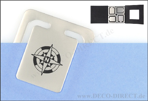 DECO DIRECT® Büroklammernhalter Kompass aus Edelstahl mit Magnet, 9,2 x 6,7 cm, in exklusiver Karton-Schiebeverpackung, Gravurempfehlung: auf Büroklammernhalter / Schild auf Verpackung, Bestellnummer: ...