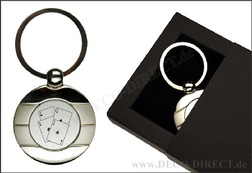 DECO DIRECT® Schlüsselanhänger rund Asse aus Metall, L: ca. 7,5 cm, in exklusiver Geschenkverpackung, Gravurempfehlung: Schild auf Geschenkverpackung, Bestellnummer: 10202360