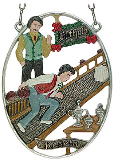 DECO DIRECT® Zinnbild Kegeln oval, H: 11,0 cm, Bestellnummer: 12-02-257C