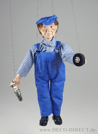 DECO DIRECT® Marionette Kfz-Mechaniker, Handarbeit mit vielen liebevollen Details, Charakterkopf aus Keramik-Gießmasse, Kleidung maßgeschneidert, H: ca. 42 cm, Bestellnummer: 70200801