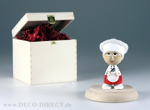 DECO DIRECT® HolzHeinzel Köchin in-a-box, handbemalt, Sockel aus Buche-Massivholz, H: ca. 9,0 cm, in Holz-Geschenkbox (10,0 x 10,0 x 10,0 cm), Gravur-Empfehlung: auf Verpackungsaußenseite / auf Holzsockel, Bestellnummer: 95201301