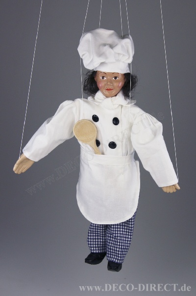 DECO DIRECT® Marionette Köchin, Handarbeit mit vielen liebevollen Details, Charakterkopf aus Keramik-Gießmasse, Kleidung maßgeschneidert, H: ca. 41 cm, Bestellnummer: 70201301