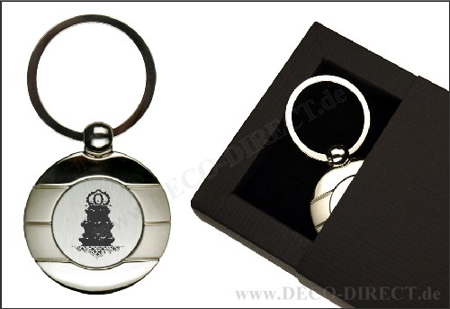 DECO DIRECT® Schlüsselanhänger rund Konditor aus Metall, L: ca. 7,5 cm, in exklusiver Geschenkverpackung, Gravurempfehlung: Schild auf Geschenkverpackung, Bestellnummer: 10201460