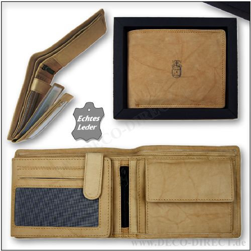 DECO DIRECT® Leder-Geldbörse Küfer aus naturbraunem Echt-Leder, 2 Scheinfächer, 11 Kartenfächer, 3 Ausweisfächer, 1 Reißverschlussfach, in Geschenkverpackung, Gravur-Empfehlung: Innenseite Geldbörse auf Kleingeldfach / Schild auf Verpackungsaußenseite, Bestellnummer: 42201910