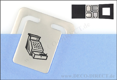 DECO DIRECT® 4er-Set Lesezeichen Kasse aus Metall, je 43 x 38 mm, in exklusiver Karton-Geschenkverpackung, Gravurempfehlung: Initialen auf Lesezeichen / Schild auf Verpackungsaußenseite, Bestellnummer: 58202410