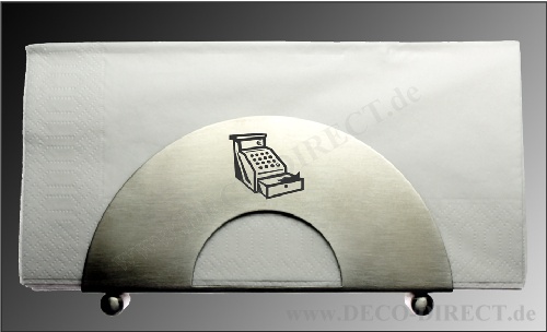 DECO DIRECT® Serviettenhalter Kasse aus Edelstahl, Maße: 15,0 x 8,0 x 3,0 cm, in Metall-Geschenkbox (15,0 x 15,0 x 6,1 cm), Gravurempfehlung: auf Serviettenhalter, Bestellnummer: 76202450