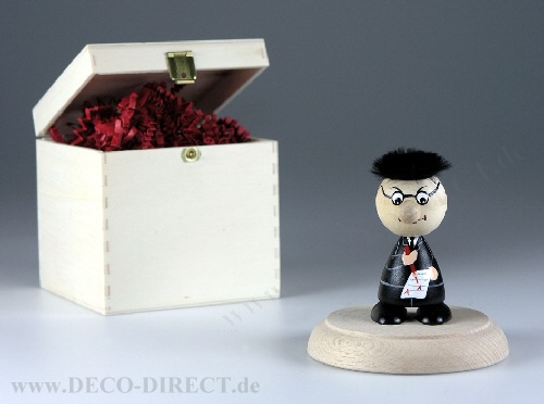 DECO DIRECT® HolzHeinzel Lehrer in-a-box, handbemalt, Sockel aus Buche-Massivholz, H: ca. 9,0 cm, in Holz-Geschenkbox (10,0 x 10,0 x 10,0 cm), Gravur-Empfehlung: auf Verpackungsaußenseite / auf Holzso ...
