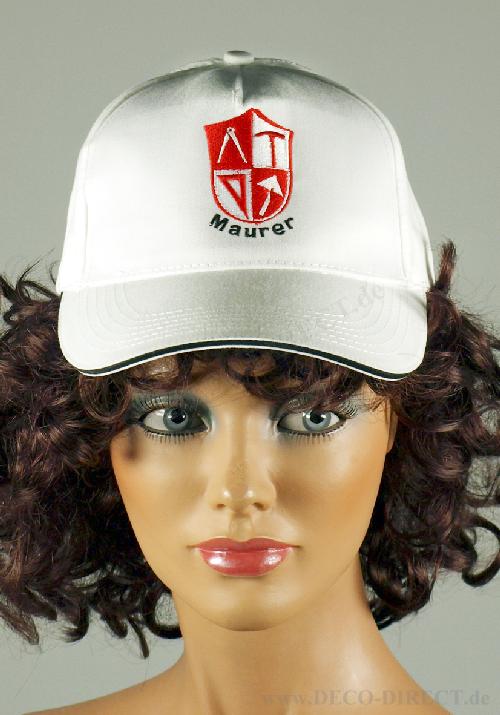 DECO DIRECT® Cap Maurer weiß aus 100% Baumwolle, mit eingesticktem Symbol und verstellbarerem Verschluss, variable Größe für Erwachsene, Bestellnummer: 48220710
