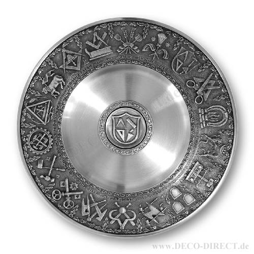 DECO DIRECT® Handwerkerteller Maurer aus Zinn mit traditionellem Zunftzeichen, Ø 26 cm, Bestellnummer: 75220750