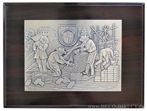 DECO DIRECT® Reliefbild Maurer auf massiver Holzplatte 27 x 22 cm mit integriertem Aufhänger, Bestellnummer: 75220780