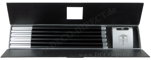 DECO DIRECT® Schreibset Maurer 1, 6 Bleistifte mit Metallkappe und Design-Anspitzer mit dezent eingraviertem Symbol, in exklusiver Karton-Geschenkverpackung (26 x 5,5 x 2,5 cm), Gravurempfehlung: Name ...