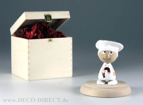 DECO DIRECT® HolzHeinzel Metzger in-a-box, handbemalt, Sockel aus Buche-Massivholz, H: ca. 9,0 cm, in Holz-Geschenkbox (10,0 x 10,0 x 10,0 cm), Gravur-Empfehlung: auf Verpackungsaußenseite / auf Holzs ...