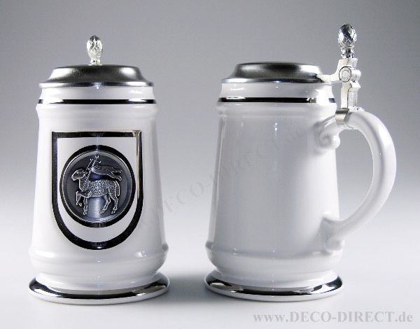 DECO DIRECT® Keramik-Bierseidel weiß Metzger 0,5 l, mit Platindekor und Zinndeckel, H: ca. 19,3 cm, Gravur-Empfehlung: auf Deckeloberseite, Bestellnummer: 75220890