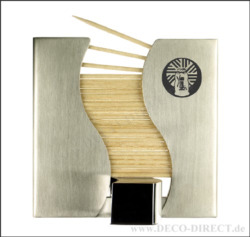 DECO DIRECT® Zahnstocherspender Müller aus Edelstahl, Maße: 8,0 x 8,0 x 3,5 cm, in exklusiver Karton-Geschenkverpackung schwarz/silber (8,5 x 8,5 x 5,5 cm), Gravurempfehlung: auf Zahnstocherspender / auf Verpackungsaußenseite, Bestellnummer: 76221040