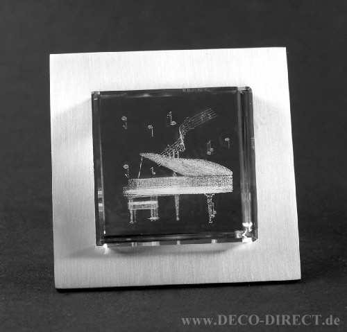 DECO DIRECT® 3D-Glasobjekt Klavier, 40 x 40 x 40 mm, in Edelstahlrahmen (64 x 64 mm), Gravur-Empfehlung: auf Edelstahlrahmen, Bestellnummer: 91221206