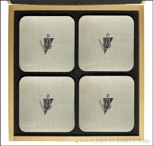 DECO DIRECT® 4er-Set Untersetzer Musik aus Edelstahl, quadratisch mit abgerundeten Ecken, jeweils 95 x 95 mm, in exklusiver Holz-Geschenkverpackung (22,5 x 22,5 x 3,5 cm), Gravurempfehlung: auf Unters ...