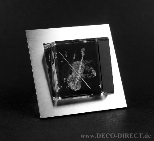 DECO DIRECT® 3D-Glasobjekt Geige, 40 x 40 x 40 mm, in Edelstahlrahmen (64 x 64 mm), Gravur-Empfehlung: auf Edelstahlrahmen, Bestellnummer: 91221203